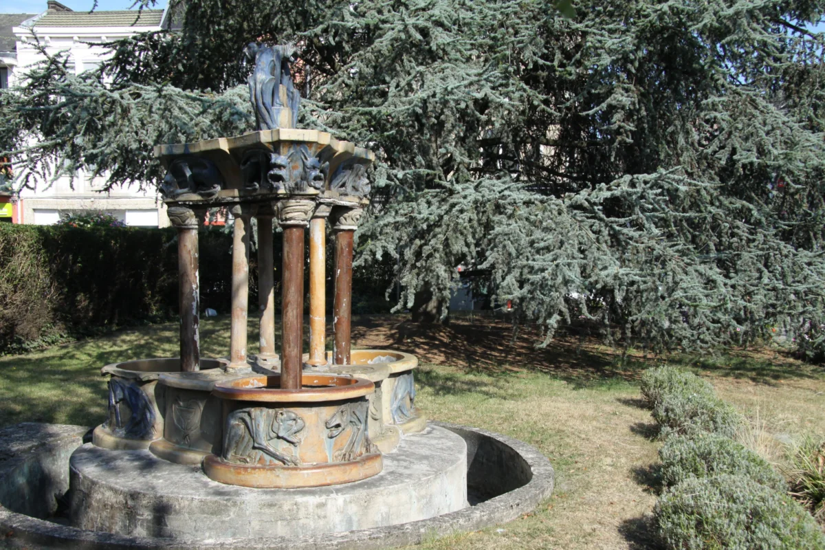 Il s’agit d’une des trois fontaines d’Arthur Craco avec la fontaine aux faisans et la fontaine aux chimères.