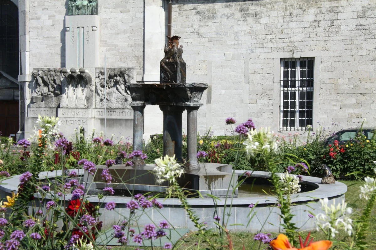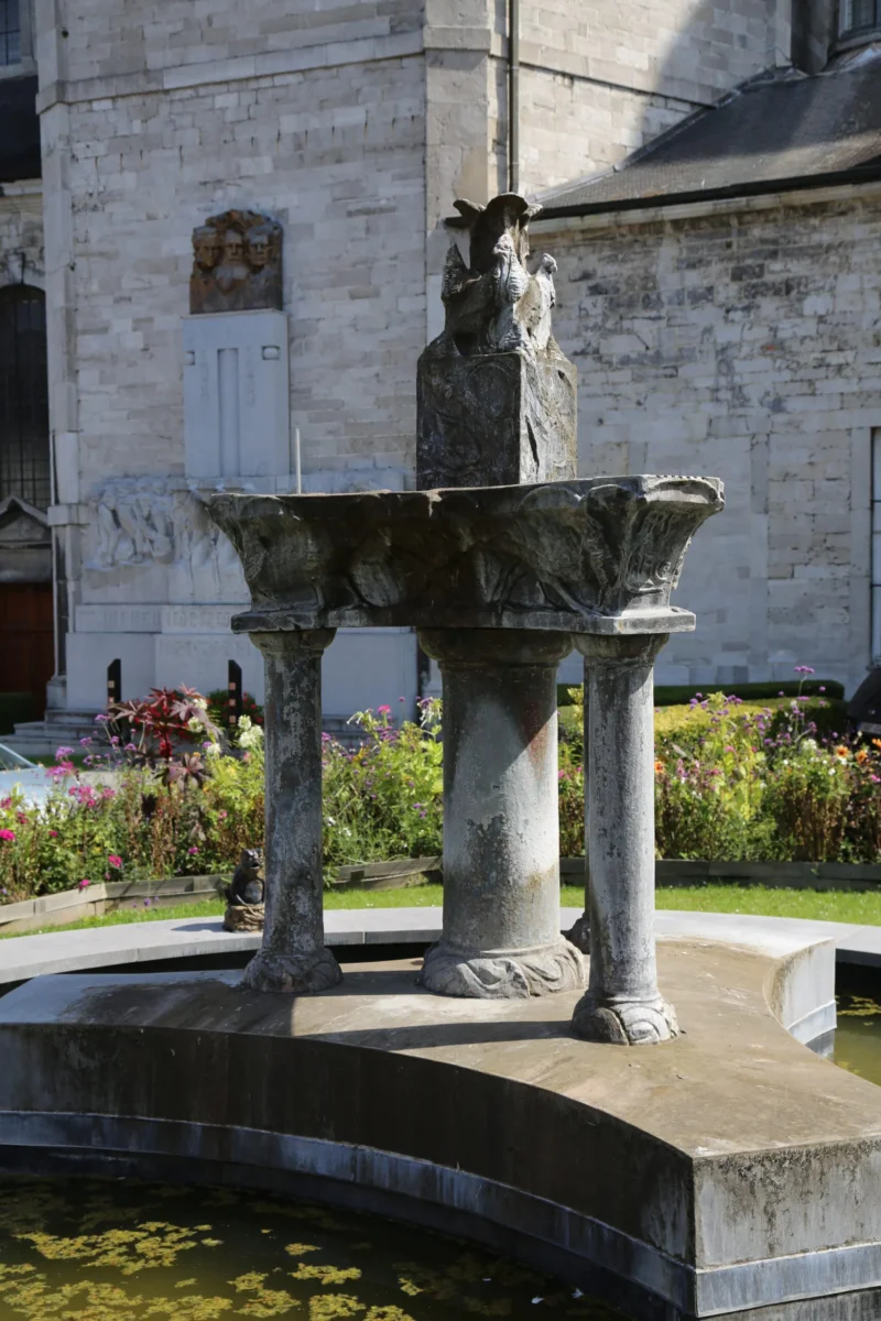 Il s’agit d’une des trois fontaines d’Arthur Carco exposée à Andenne, avec la fontaine aux chimères et la fontaine aux chats.