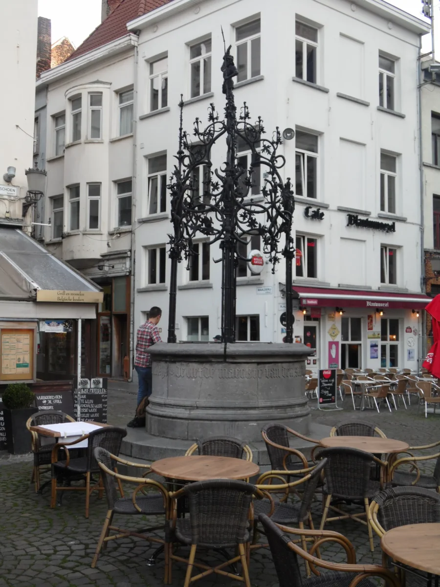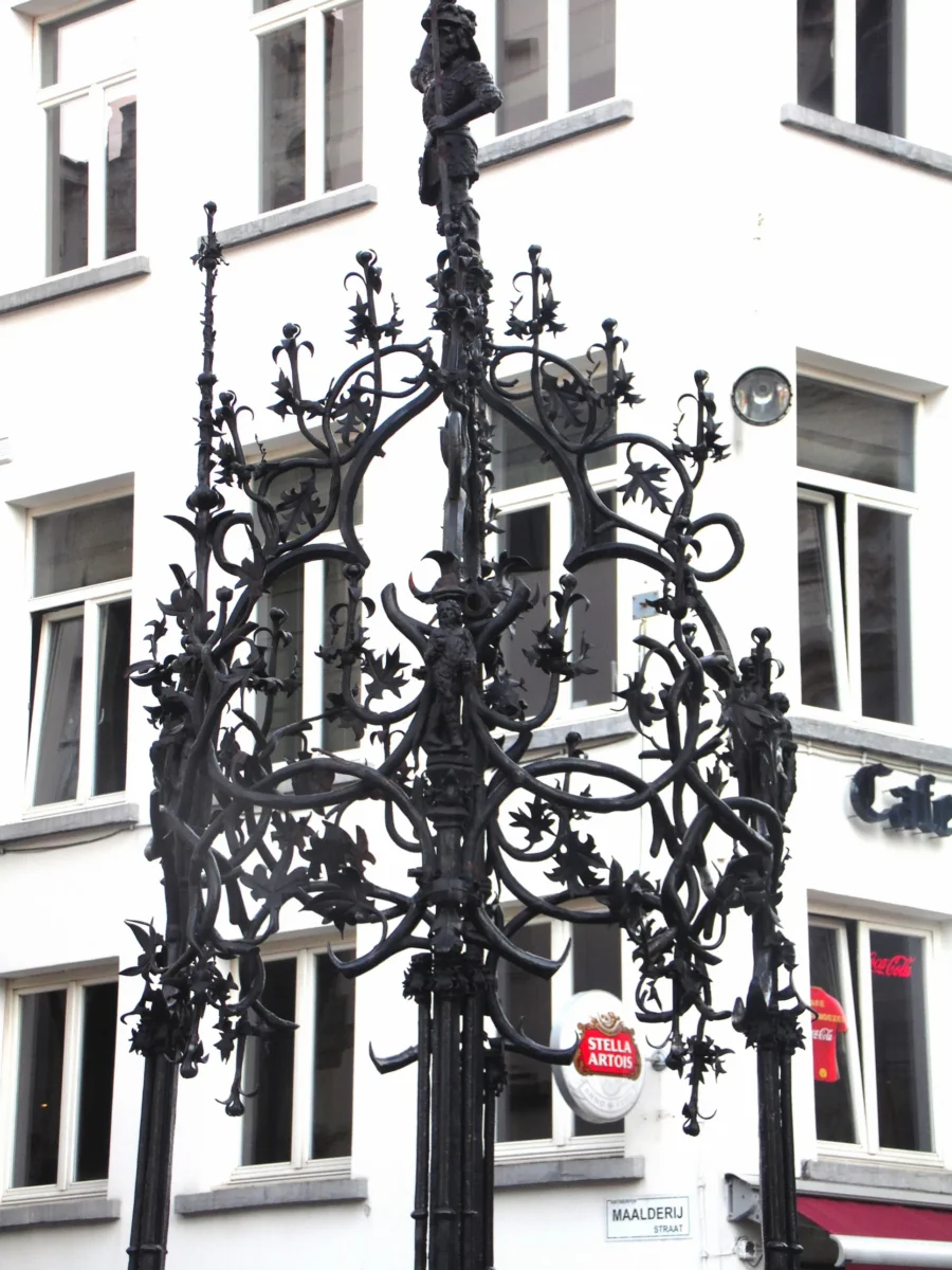 Le monument est surmonté d’une statuette de « Brabo tenant la main du géant » et rappelle ainsi la légende de l’origine d’Anvers.