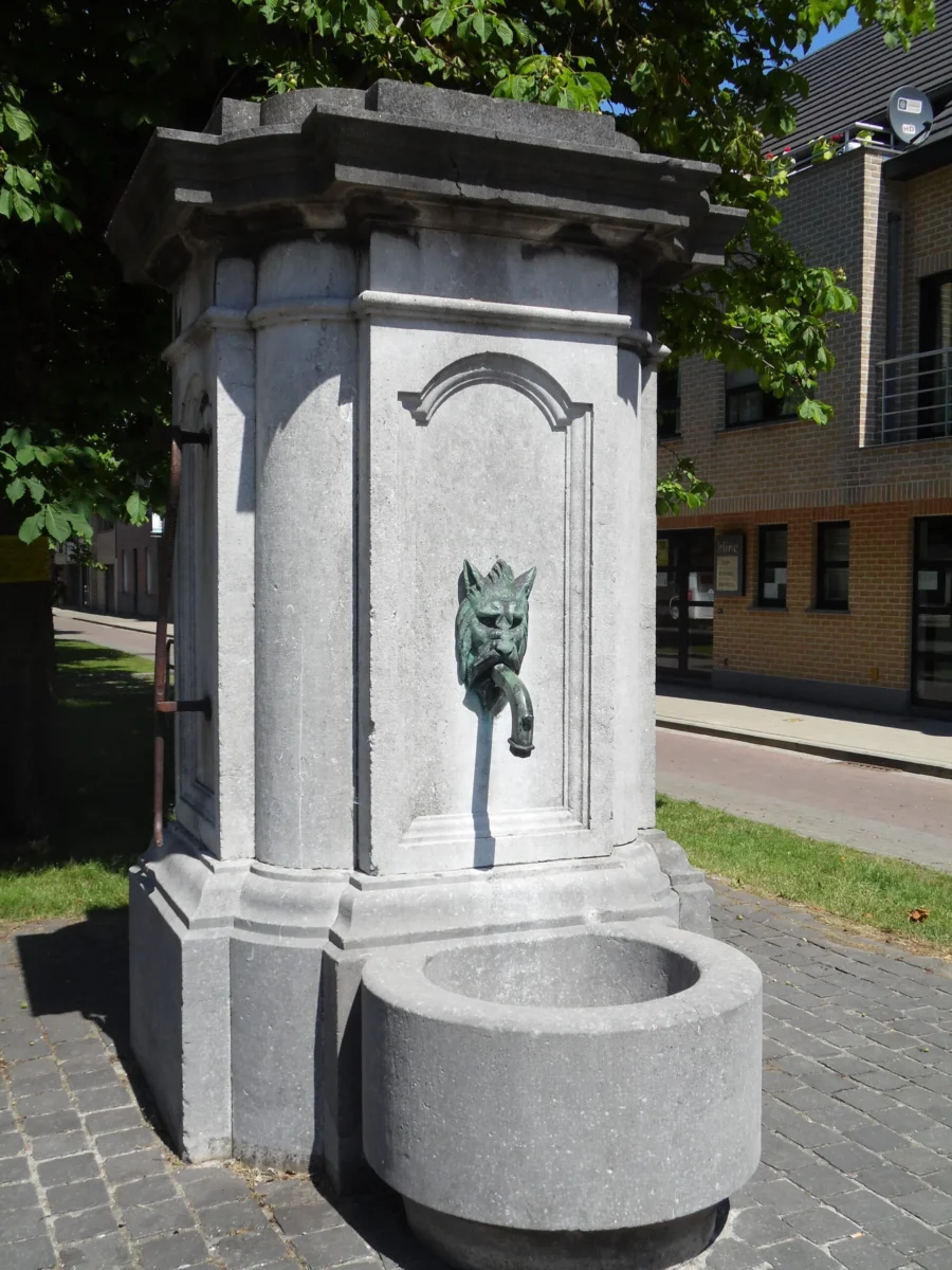 La pompe à eau publique a été mise en place pour remplacer une pompe de village en bois, déjà mentionnée au XVIe siècle. Lors d’une séance tenue le 22 novembre 1871 sous le maire de D. Van de Wattyne, le conseil municipal proposa de remplacer la pompe en bois en mauvais état par une pompe en pierre bleue. La nouvelle pompe serait placée « autour de la pompe existante ». Le conseil municipal a chargé l’ingénieur en structure Edmond de Perre-Montigny de Gand d’un dessin. En 1875, l’autorisation d’installer la pompe a été accordée. Lorsque le monument aux morts a été fondé en 1920, la pompe a été déplacée de quelques mètres à son emplacement actuel. Il est resté en usage jusqu’au milieu du 20e siècle. Avec le récent renouvellement du centre du village, la pompe a été tournée dans une direction différente.