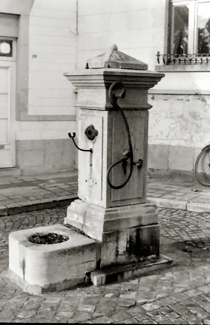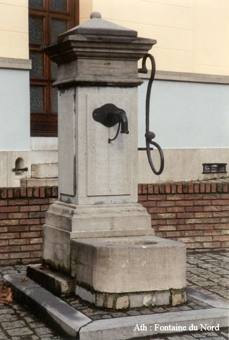 Il s’agirait de la pompe qui se trouvait jadis rue Hennepin et qui fut transférée à la Place du Nord suite à la décision du conseil communal du 25 août 1848 pour cause d’obstruction de la dite rue.