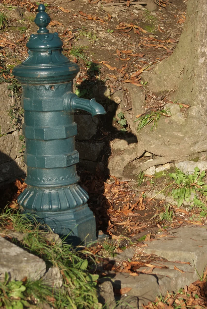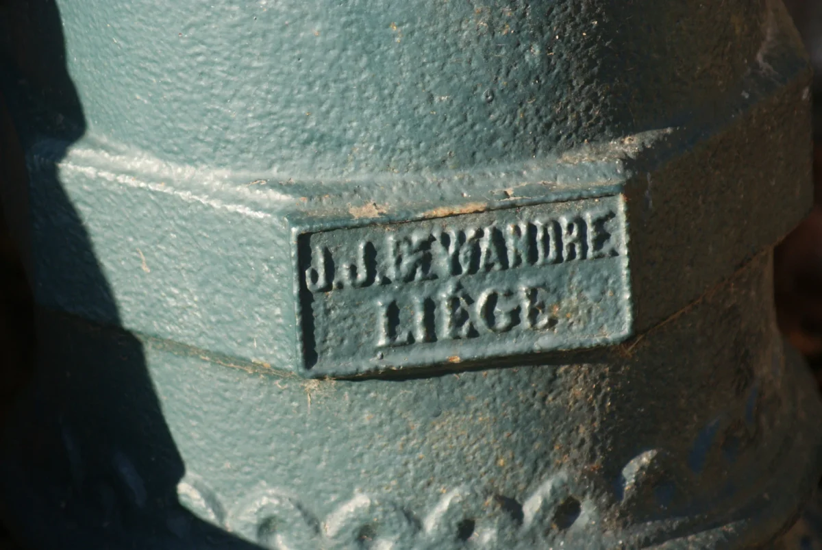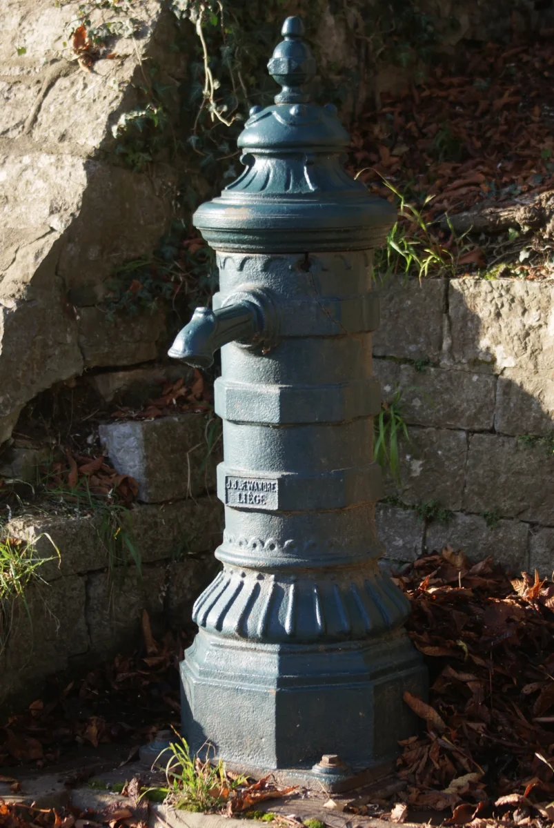 Cette double pompe à eau en pierre bleue fut construite par De Lateur en 1777, selon l’inscription.