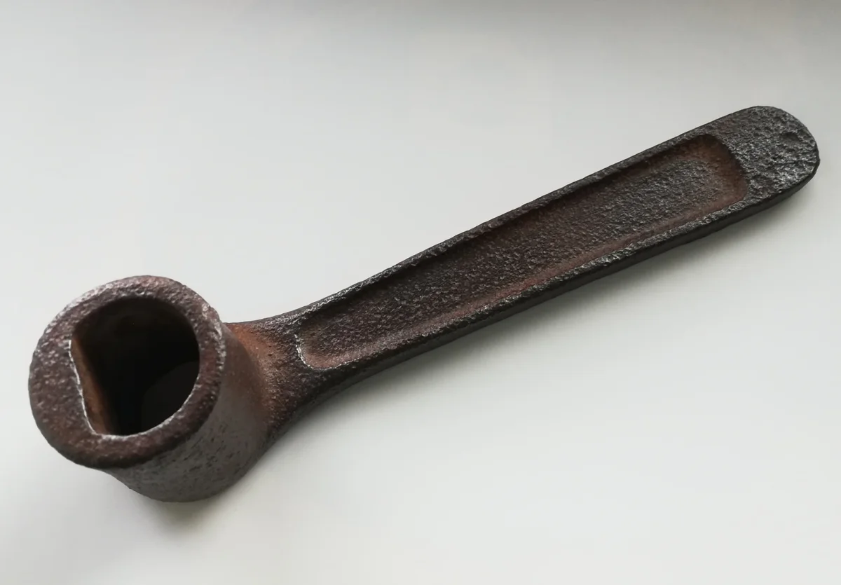 La base est plus ou moins rectangulaire avec une buse en cuivre dans une tête de lion et ce des des deux côtés de la