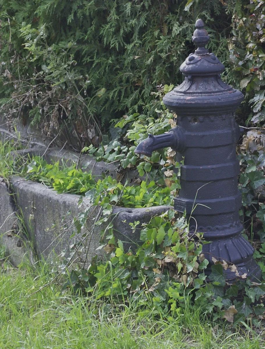 Cette double pompe à eau en pierre bleue fut construite par De Lateur en 1777, selon l’inscription.