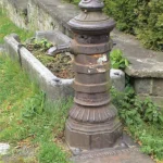 La base est plus ou moins rectangulaire avec une buse en cuivre dans une tête de lion et ce des des deux côtés de la