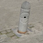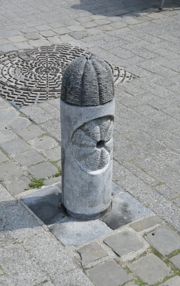 Cette double pompe à eau en pierre bleue fut construite par De Lateur en 1777, selon l’inscription.