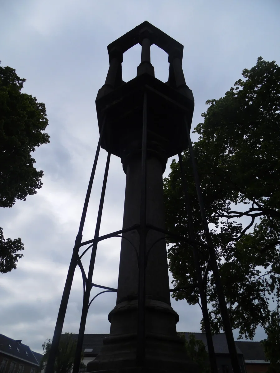 Le chapiteau est surmonté aux angles de l’hexagone par six colonnettes qui reprennent en ton mineur le socle inférieur. La balustrade de la « lanterne » est portée par des arcs trilobés surmontant les colonnettes. Sauvé par miracle des révolutionnaires en 1794 grâce à l’intervention énergique du dernier bailli de la ville, Justinien Thienpont, le pilori fut menacé une fois encore en 1838 par les démolisseurs. Cependant, un arrêté royal de 1841 le sauva définitivement du vandalisme. La dernière restauration en date eu lieu en 2019. Lors de cette restauration et afin de rétablir la silhouette inhérente à sa fonction primitive, il fut ajouté une colonnette centrale et une toiture réalisée avec des tôles métalliques triangulaires et insertion des armoiries de Maximilien de Hornes.