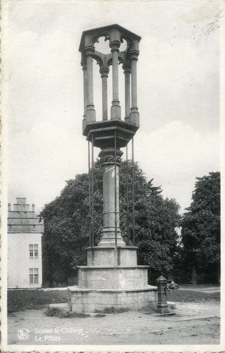 Le Pilori de Braine-le-Château servit de fontaine avant la guerre de 1914 et est le plus original des piloris de Belgique de par son lanterneau qui lui donne un étage gracieux. Il fut érigé au milieu de la place par Maximilien de Hornes afin d’y exposer les criminels. On peut d’ailleurs lire sur la banderole de pierre qui fait le tour du chapiteau l’inscription suivante : « Maximilien de Hornes, seigneur de Gaesbeek, chevalier de l’ordre de l’empereur 1521 ».