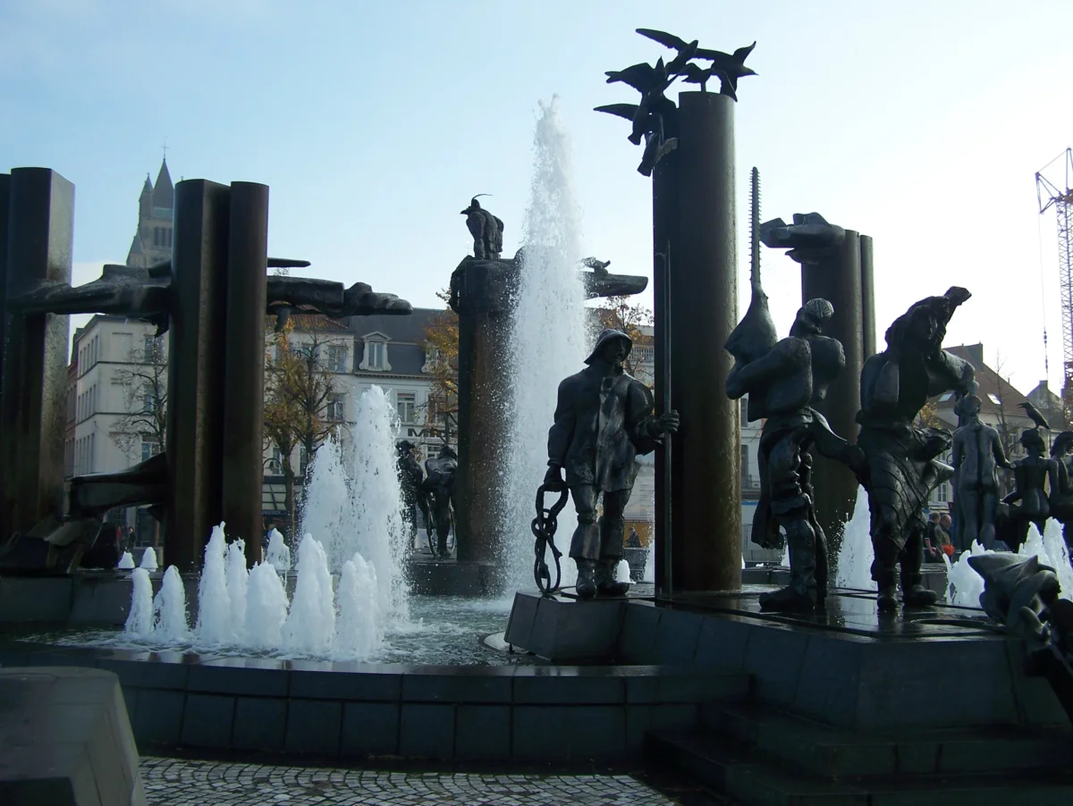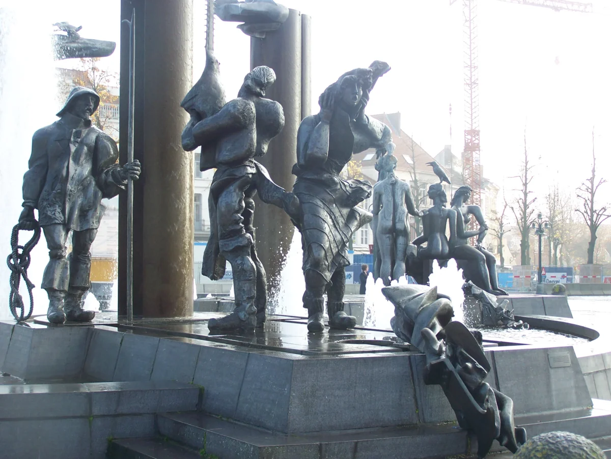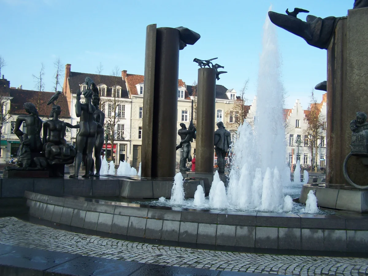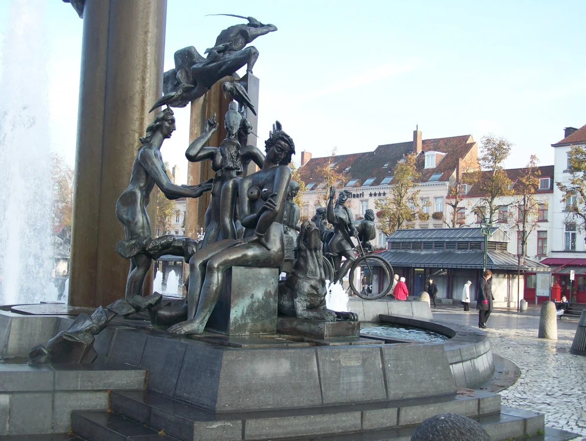 En plein milieu de cette place trônait une fontaine monumentale. Cette fontaine avait été créée par Stefaan Depuydt et Livia Canestraro en 1985. Différentes représentations sont présentes sur cette fontaine :
