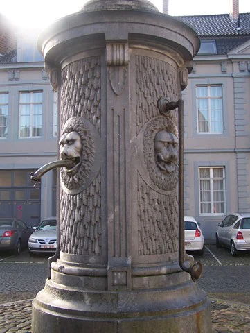 Les deux jets de la pompes sont situés au milieu de deux panneaux opposés et sont formés par des têtes de lion largement traitées.