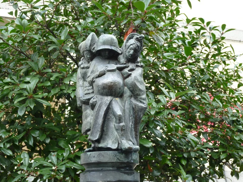 À l’instar des fontaines Wallace à Paris (et à Bruxelles), de nombreuses fontaines-abreuvoirs étaient accessibles à la population bruxelloises durant le 19ème siècle. Après leur disparation progressive, la ville de Bruxelles décida dans les années 1980 de placer des fontaines abreuvoirs aux emplacements des anciennes fontaines abandonnées. Douze fontaines furent alors commandées à deux artistes Jos de Decker et Jean Roig avec comme point commun : Pieter Brueghel l’Ancien. En effet, toutes ces fontaines s’inspirent de différentes œuvres du peintre.
