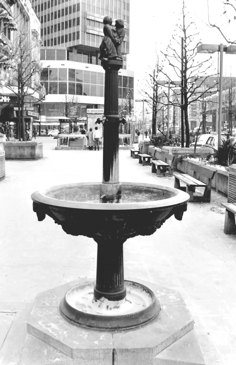 Celle-ci représentait deux femmes faisant une balançoire avec un jeune enfant. Avec les travaux d’aménagement de la Place de Brouckère, cette fontaine a disparu. Elle faisait référence, tout comme Saute-mouton et Balance sur un tonneau, au tableau Les jeux d’enfants.