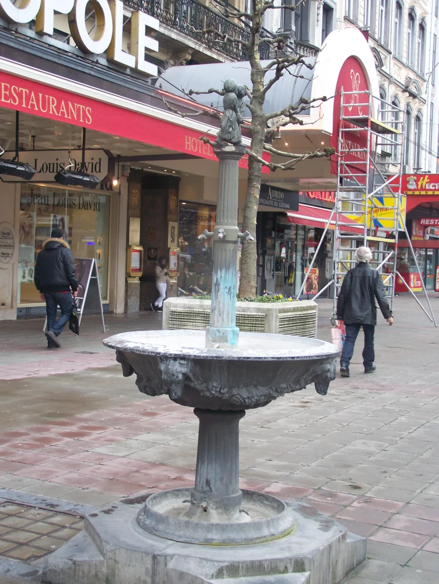 À l’instar des fontaines Wallace à Paris (et à Bruxelles), de nombreuses fontaines-abreuvoirs étaient accessibles à la population bruxelloises durant le 19ème siècle. Après leur disparation progressive, la ville de Bruxelles décida dans les années 1980 de placer des fontaines abreuvoirs aux emplacements des anciennes fontaines abandonnées. Douze fontaines furent alors commandées à deux artistes Jos de Decker et Jean Roig avec comme point commun : Pieter Brueghel l’Ancien. En effet, toutes ces fontaines s’inspirent de différentes œuvres du peintre.