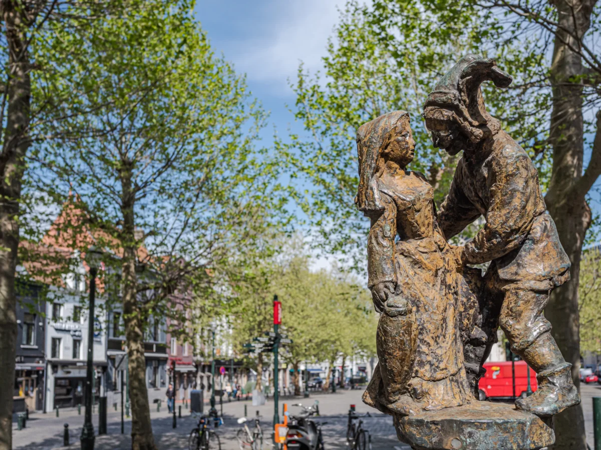 À l’instar des fontaines Wallace à Paris (et à Bruxelles), de nombreuses fontaines-abreuvoirs étaient accessibles à la population bruxelloises durant le 19ème siècle. Après leur disparation progressive, la ville de Bruxelles décida dans les années 1980 de placer des fontaines abreuvoirs aux emplacements des anciennes fontaines abandonnées. Douze fontaines furent alors commandées à deux artistes Jos de Decker et Jean Roig avec comme point commun : Pieter Brueghel l’Ancien. En effet, toutes ces fontaines s’inspirent de différentes œuvres du peintre.