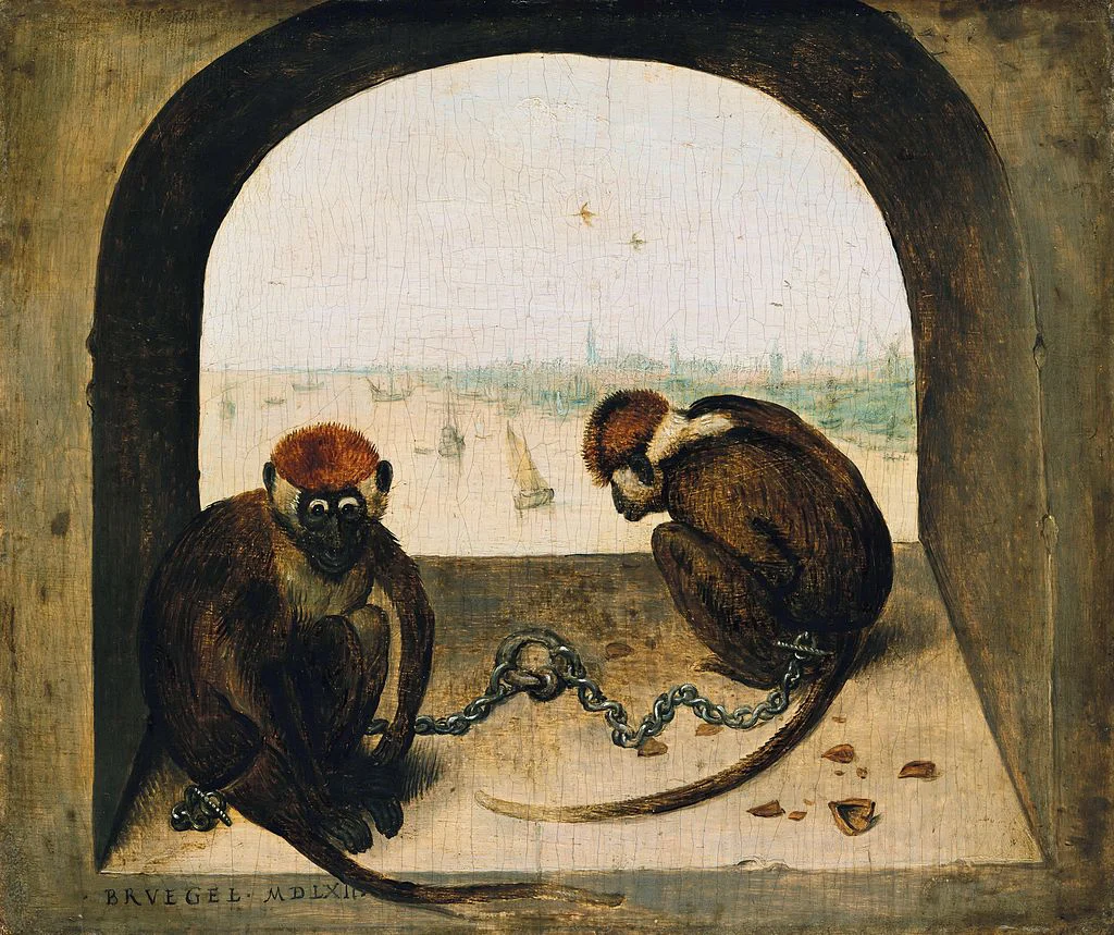 Celle-ci représente un singe. C’est la seule qui ne représente pas des personnes. Elle s’inspire de l’œuvre Deux Singes de Brueghel.