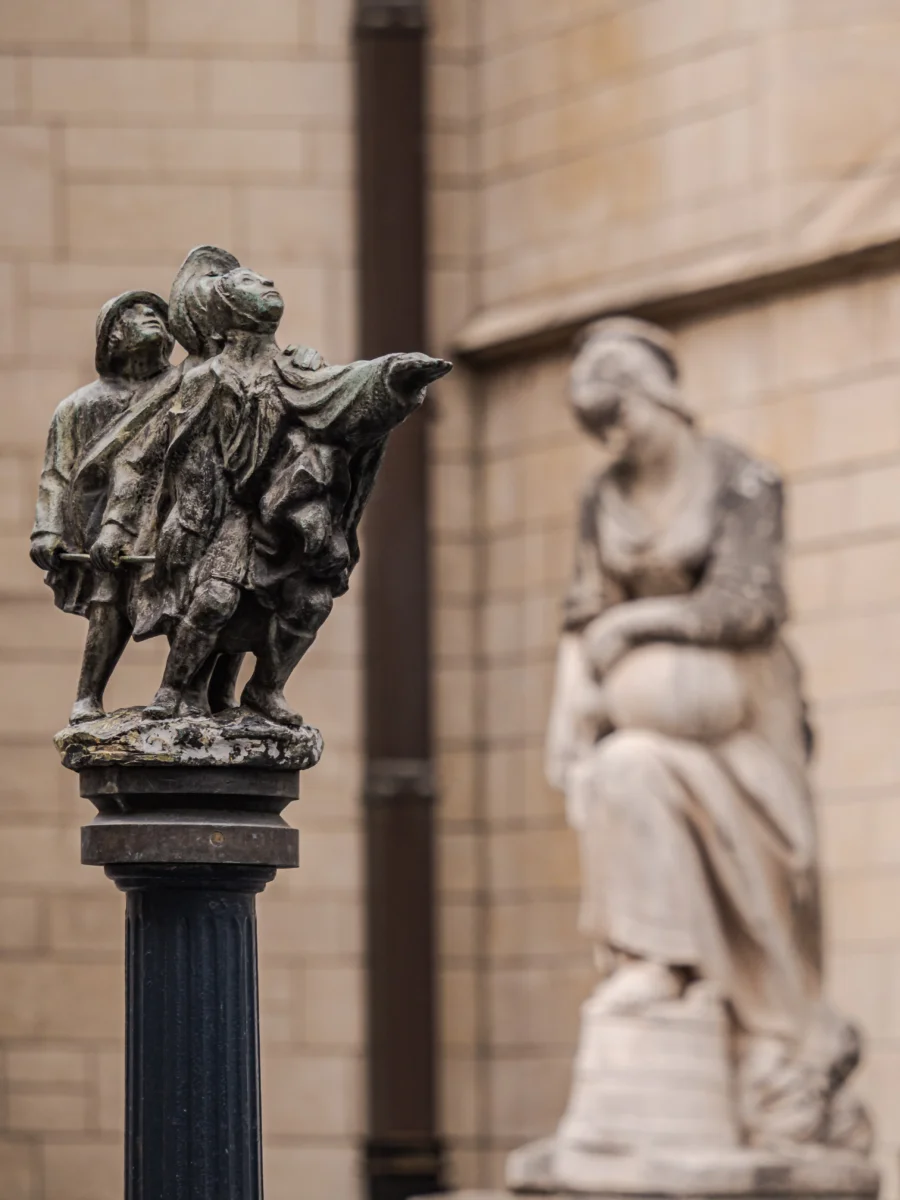 À l’instar des fontaines Wallace à Paris (et à Bruxelles), de nombreuses fontaines-abreuvoirs étaient accessibles à la population bruxelloises durant le 19ème siècle. Après leur disparation progressive, la ville de Bruxelles décida dans les années 1980 de placer des fontaines abreuvoirs aux emplacements des anciennes fontaines abandonnées. Douze fontaines furent alors commandées à deux artistes Jos de Decker et Jean Roig avec comme point commun : Pieter Brueghel l’Ancien. En effet, toutes ces fontaines s’inspirent de différentes œuvres du peintre.