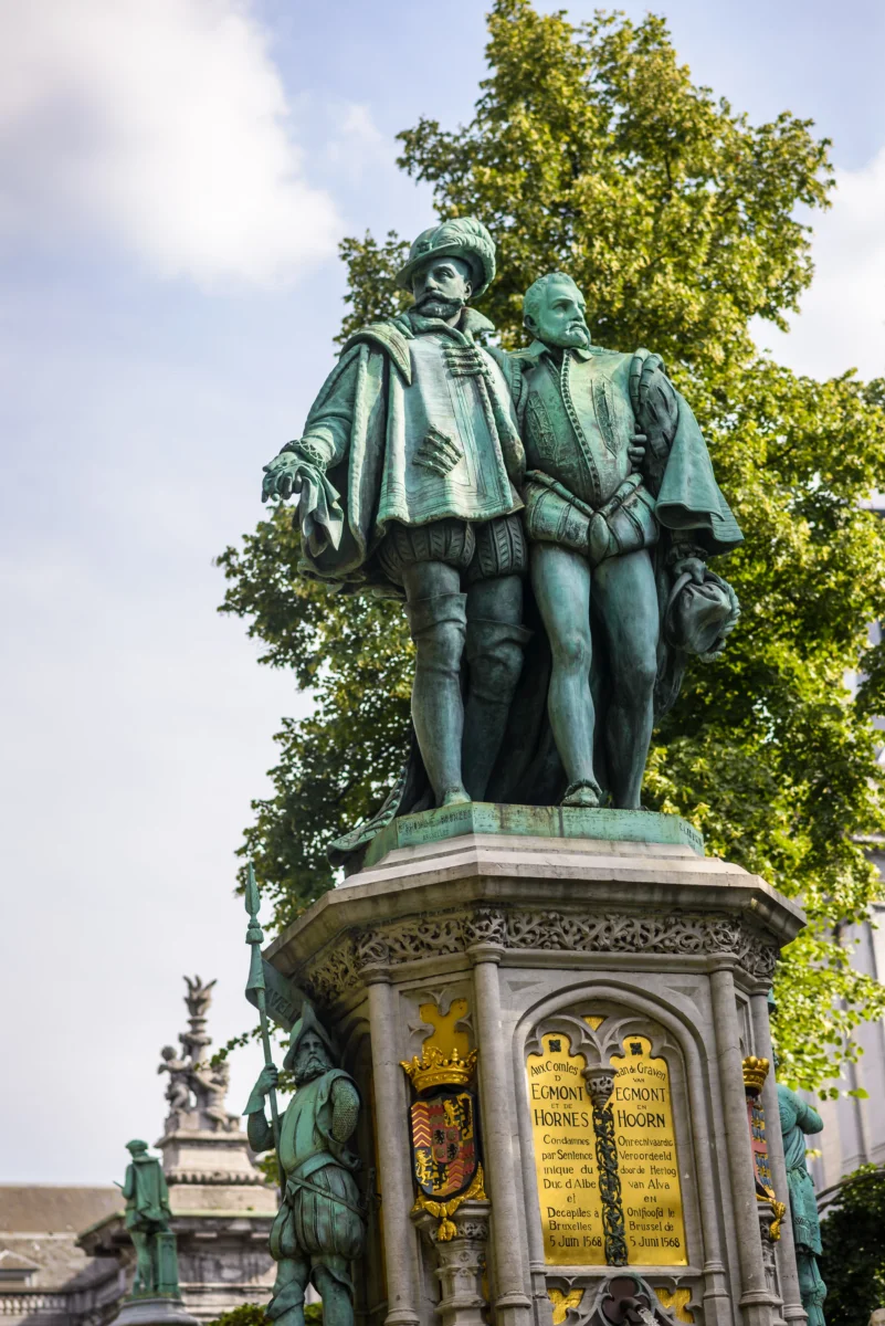 En 1864, on monta, sur la Grand Place de Bruxelles, à l’emplacement de l’exécution par décapitation des comtes d’Egmont et de Hornes, une fontaine monumentale leur étant dédiée. Les comtes d’Egmont et de Hornes avaient demandé au roi d’Espagne, Philippe II, de respecter les anciennes coutumes et la liberté de culte. Le duc d’Albe, envoyé par Philippe II, accompagné de dix-sept mille soldats pour réprimer la révolte de ces « gueux » qui osaient bafouer son autorité.