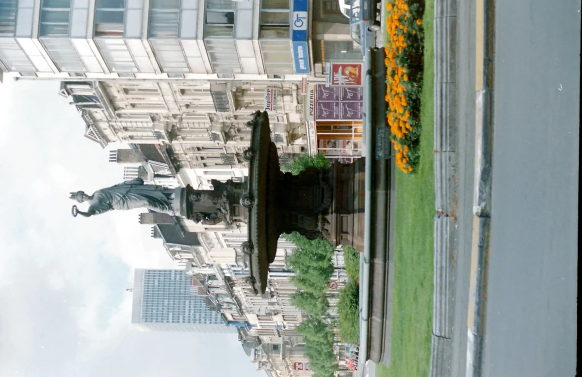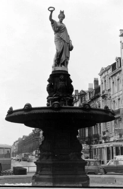 Ce monument, œuvre de C.A. Fraikin et J. Poelaert, se compose d’une fontaine à double vasque implantée dans un parterre de verdure au centre d’un carrefour à grande circulation. La figure principale est une statue de marbre blanc, une femme au visageserein, qui personnifie la ville de Bruxelles comme l’indique son diadème formé des tours de la Cathédrale des Saints-Michel-et-Gudule.
