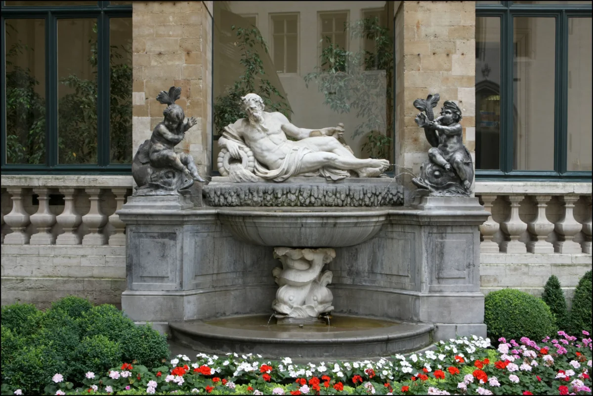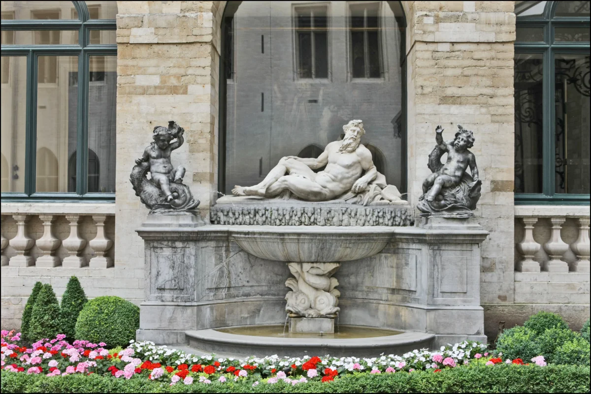 Lors de l’agrandissement de l’Hôtel de Ville, il fut décidé de créer en son centre une cour d’honneur dans laquelle deux fontaines furent placées pour l’embellir.