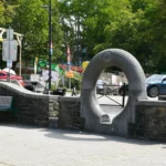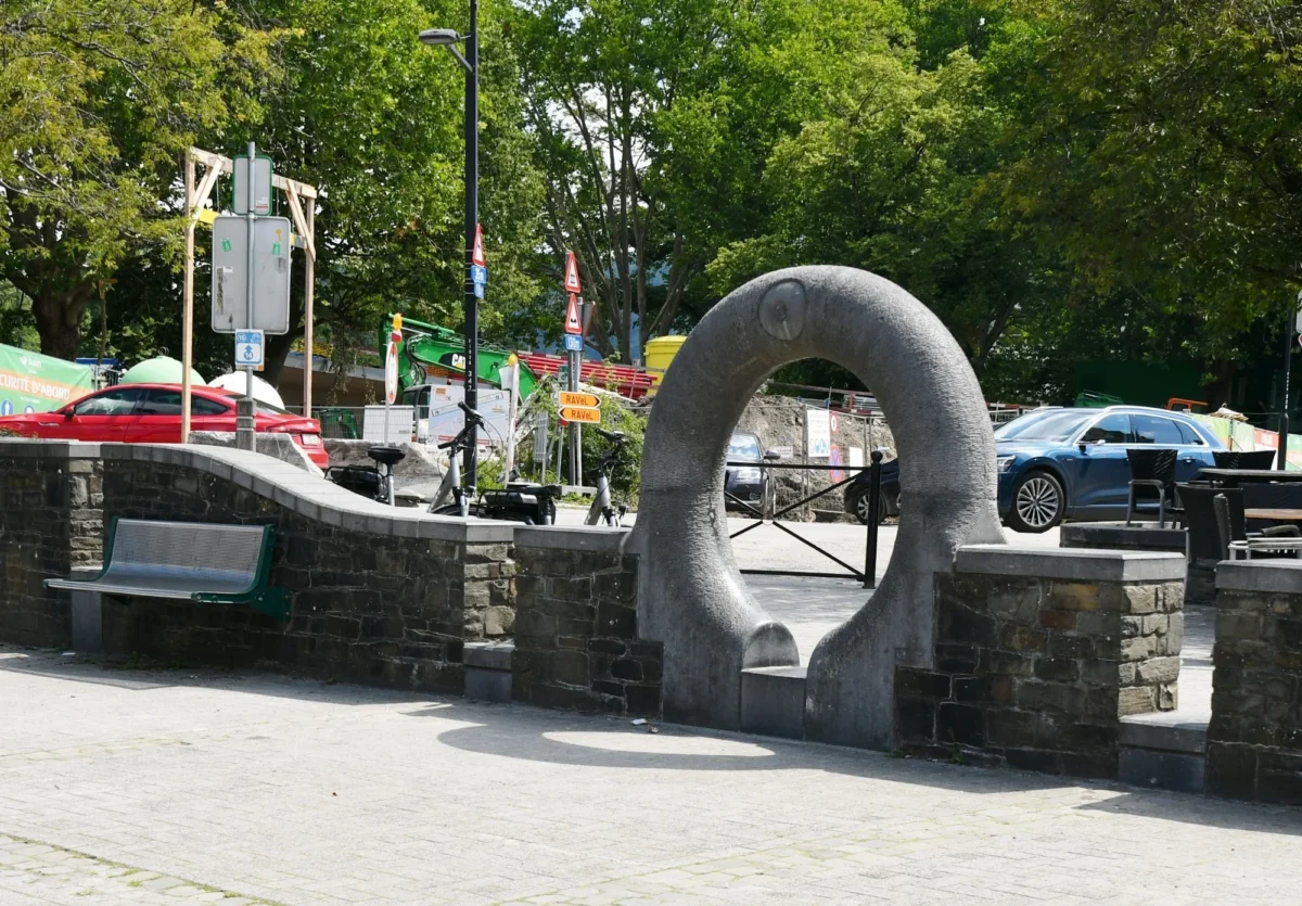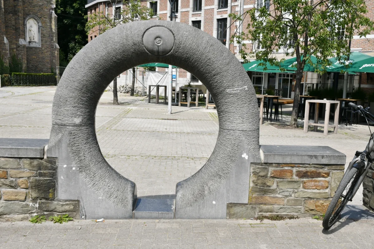 Cette double pompe à eau en pierre bleue fut construite par De Lateur en 1777, selon l’inscription.