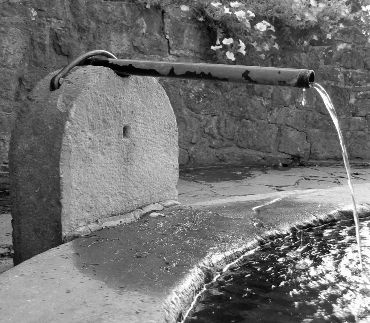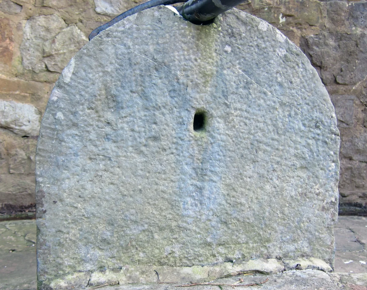 Cette double pompe à eau en pierre bleue fut construite par De Lateur en 1777, selon l’inscription.