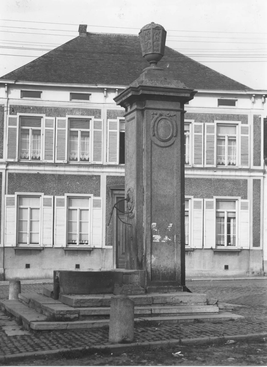jaillissant par un tuyau en fer forgé. La fontaine fut placée en 1781. En 1901, 9 autres bornes fontaines à clés furent placées sur la Onderstraat, la Scheldestraat, le marché et la Broeckstraat.