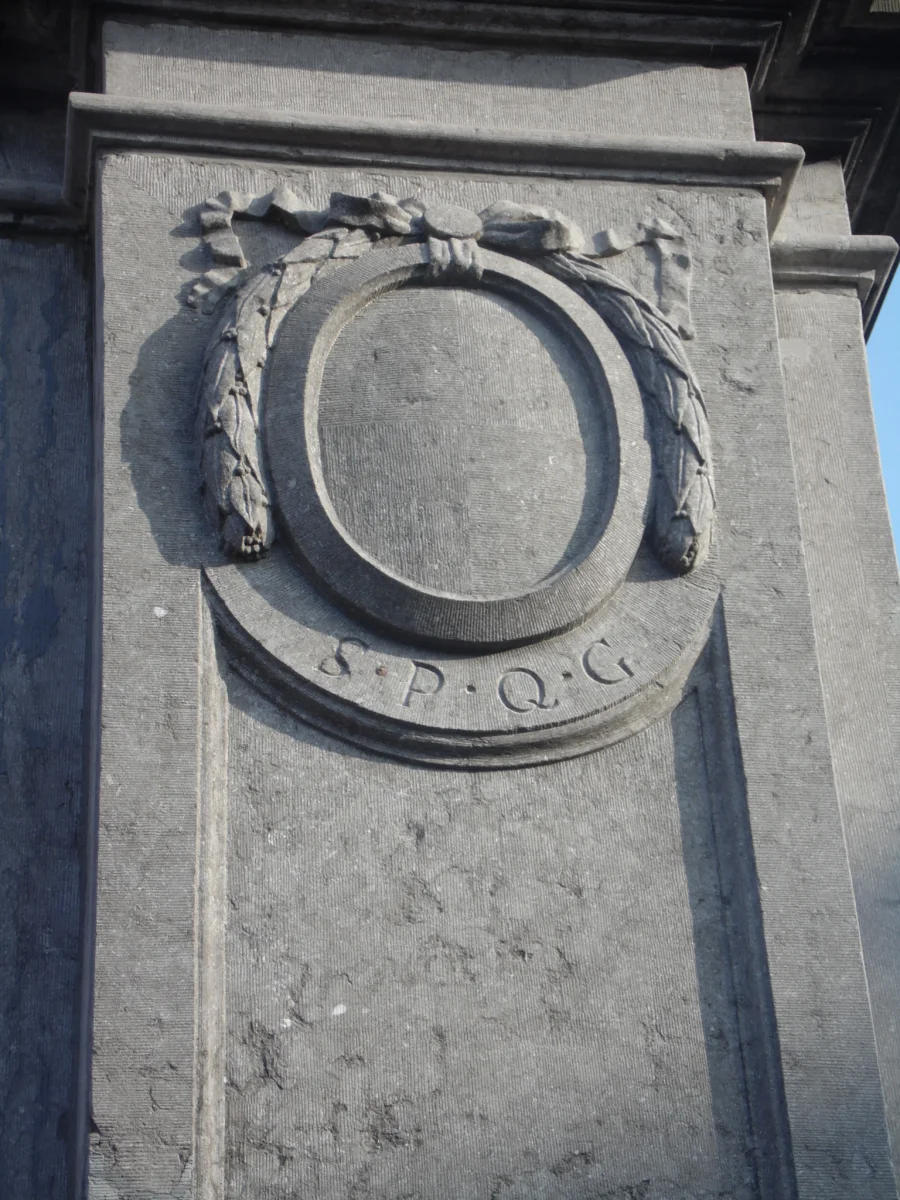 Lors la construction de l’approvisionnement en eau par TMVW (1970), les bornes ont été enlevées. Seule l’une d’entre elle fut conservée et restaurée. À l’occasion de ses deux cents années d’existence, la fontaine monumentale fut restaurée par l’architecte W.De Pelsmaeker en 1982 mais certaines parties de celle-ci ne sont plus d’origine. La fontaine fut classée en mai 1984 Sur le côté gauche et à droite de la fontaine sont gravées les lettres SPQG (Senatus Populusque Gaver Ensis, signifiant l’Administration et le peuple gaversois). L’eau provenant de la source Saint Amand située dans un haut quartier de Gavere alimente la fontaine. Sur le front de la pompe, une clé spécifique permettait d’ouvrir ou de fermer l’écoulement d’eau.