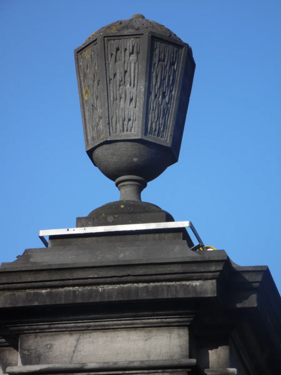 et l’autre par un vase décoré de guirlandes. C’est la fontaine surmontée du vase plus sombre qui fut choisie. L’eau