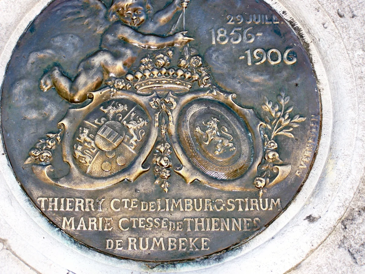 Installée le 29 juillet 1906, cette pompe a été offerte à la ville d’Huldenberg par le comte Thierry de Limburg-Stirum et la comtesse Marie-Thérèse-Astérie-Ghislaine de Thiennes Leyenburg de Rumbeke. Ce cadeau célèbre leur 50 ans de mariage. Pour cet anniversaire, les villageois avaient arrosé la famille du comte de fleurs et de cadeaux.