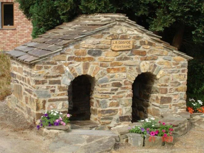d’élargissement de la voirie réalisés en 1949, la fontaine fut démolie et une partie des eaux de la source a été canalisée. La nouvelle construction date de 1990.