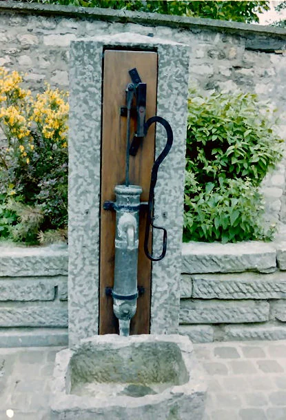 En 1842, quatre pompes publiques sont installées à Jodoigne pour satisfaire les exigences en eau des habitants. Elles sont constituées d’un beau bloc monolithe de pierre bleue où le mécanisme de la pompe est adossé.