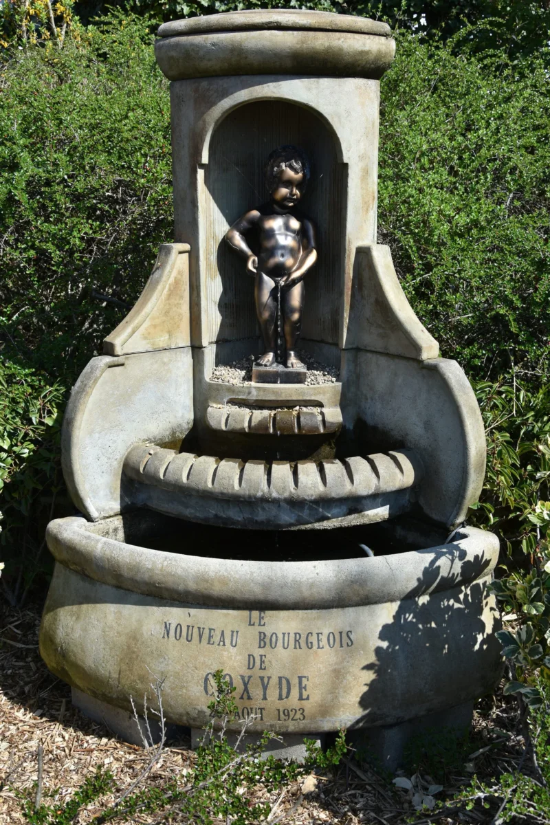 Il n’est pas étonnant de tomber sur des Manneken Pis ailleurs qu’à Bruxelles ! Il y en un à Grammont (c’est d’ailleurs le plus ancien), un à Braine l’Alleud et un à Coxyde ! Celui-ci a été installée en 1923 et appartenait à une villa privée nommé Ma Tocade où résidait un bruxellois. On peut lire le texte suivant sur le piédestal : Le Nouveau Bourgeois de Coxyde – 16 août 1923. Suite à un changement de parcelle, la statue s’est retrouvée sur un autre terrain et le propriétaire de l’époque décida de retirer le Manneken Pis et d’y installer une Vierge Marie à la place.