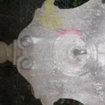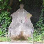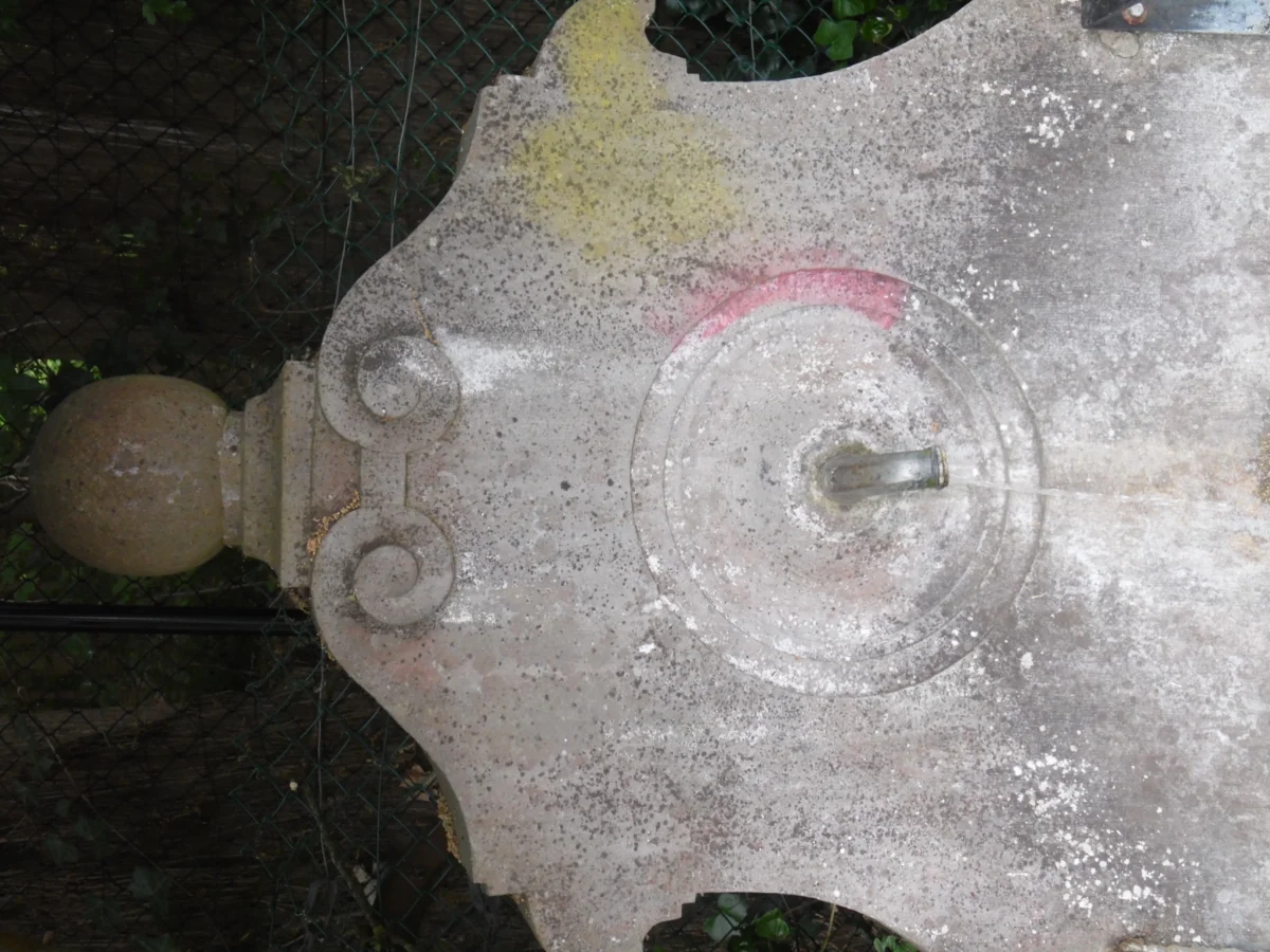 La fontaine est constituée d’une dalle de pierre monolithe. Son profil est galbé, avec moulures, épis et volutes. Deux garde-fous en fer forgé sont placés de chaque côté de la fontaine pour éviter les chutes dans le fossé. Le trop-plein rejoint deux étangs proches.