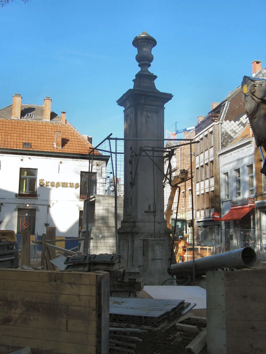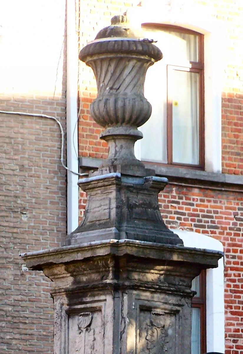 La pompe est constituée d’une colonne carrée avec socle et entablement que surmonte un vase à godrons et à cannelures torses. Les faces de la colonne forment des pilastres et sont décorées de panneaux à feuillage sculpté à la partie supérieure.