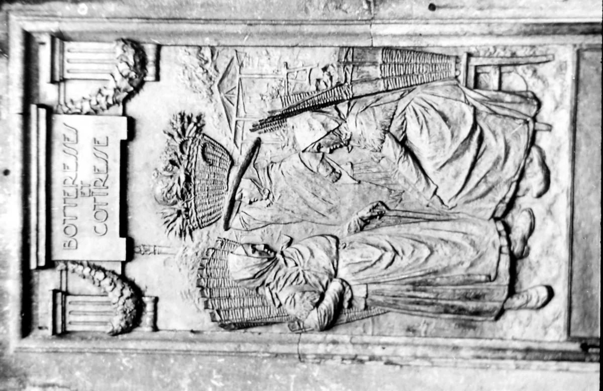 placée sur une des faces, on retrouve les armoiries du prince Joseph-Clément de Bavière et des bourgmestres régents N.D. de Trappé et J.M. de Lambinon ainsi que l’inscription « faite par Pierre Levache » qui révèle le nom du fondeur de la porte et du bassin. Trois autres panneaux en bronze furent placés en 1930 et représentent en bas-relief des scènes de la vie populaire liégeoise : la cramignon, les marionnettes, les botteresses et les côtiresses. Ceux-ci sont l’œuvre de Georges Petit.