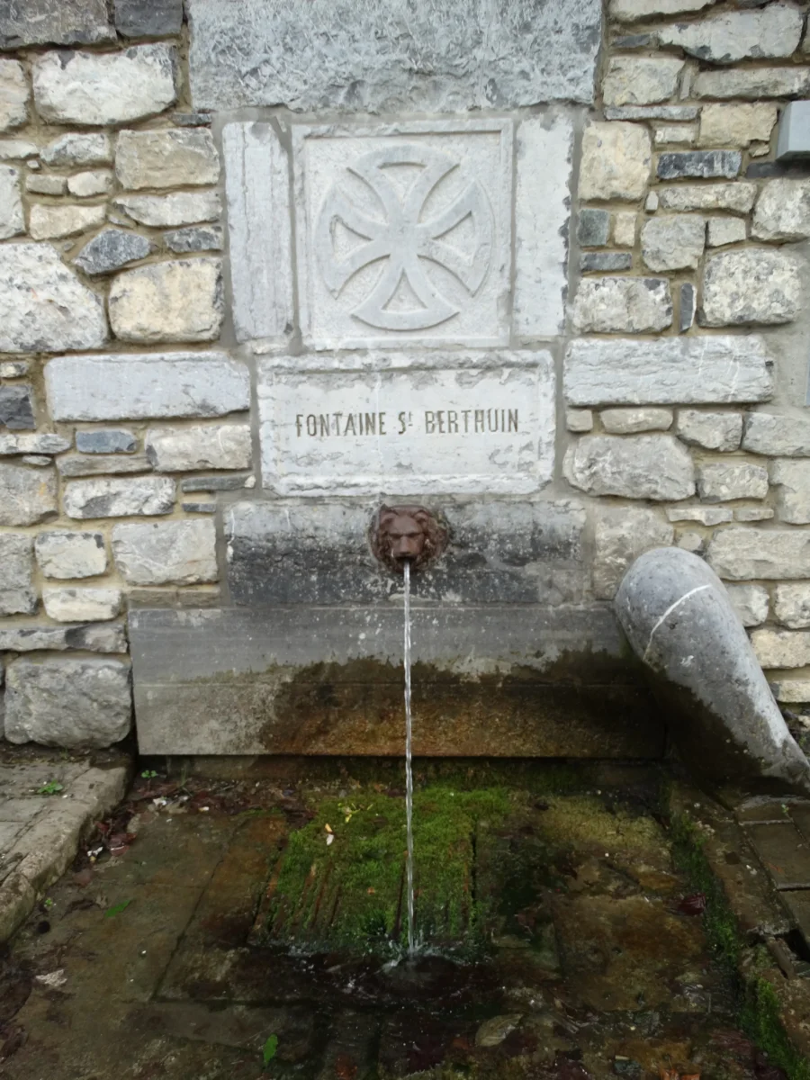 Saint Berthuin était invoqué pour les enfants rachitiques, pour la guérison des maladies épileptiques ainsi que pour les rhumatismes. Les pèlerins venaient boire l’eau de la fontaine Saint-Berthuin qui se trouve aujourd’hui au bord de la route le long du mur de l’école des Frères. Autrefois, cette source coulait dans l’enceinte même de l’abbaye à proximité du cimetière. Elle fut déplacée pour permettre aux fidèles de s’en approcher sans perturber la vie de la maison.
