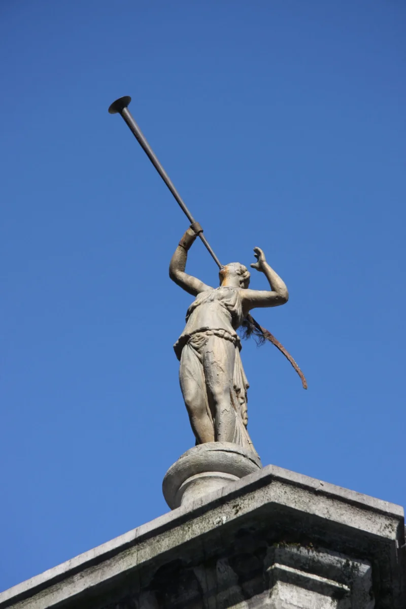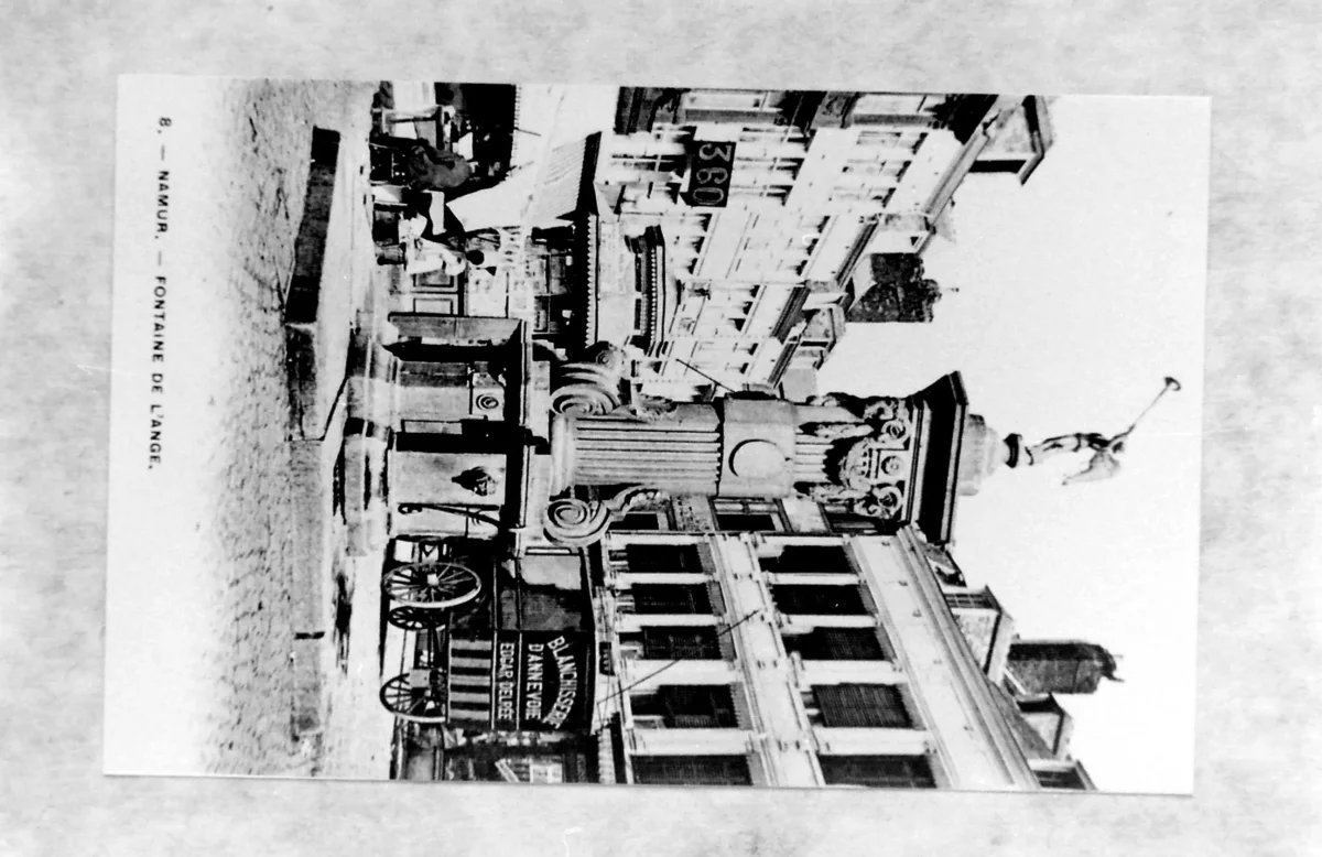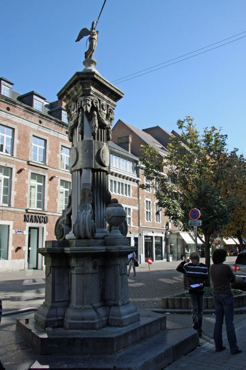 La Pompe de l’Ange à Namur fut exécutée en 1790-1791. De style Louis XVI, elle est aujourd’hui complètement désaffectée et toute trace d’utilisation a disparu. Elle est composée d’une colonne centrale cannelée contre laquelle sont appliqués trois pilastres étroits dont la base s’enroule en volutes ornées d’acanthes et dont la partie supérieure disparaît sous une tête de bélier aux cornes duquel sont suspendues des guirlandes de laurier. Les trois têtes sont ainsi reliées entre elles. Un entablement triangulaire les recouvre ainsi que la colonne. Le piédestal est formé de six éléments en faisceau. Le tout est dominé par une figure dorée représentant un ange aux ailes déployées sonnant de la trompette, œuvre du sculpteur François-Joseph-Denis. Un vase daté 1791 est posé sur la base de la pompe.
