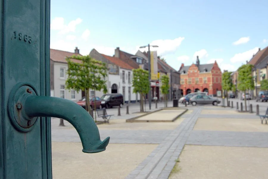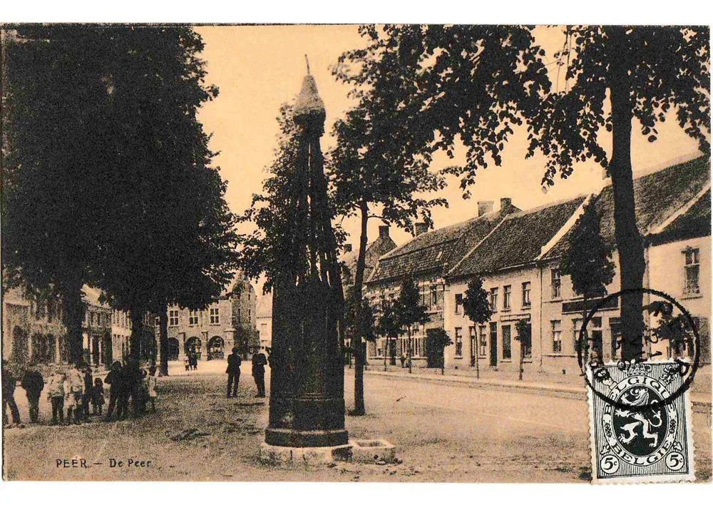 Jusqu’au 18ème siècle, la place de Peer était un lieu d’abreuvement pour le bétail ainsi un lavoir en raison de la présence d’étangs. Pour des raisons d’hygiène, le point d’eau central a été comblé en 1767 et remplacé par plusieurs pompes. À l’emplacement actuel, une première pompe en bois et de pierre fut installée. Celle en fonte que vous pouvez admirer maintenant se trouvait à l’origine à l’hôtel de ville mais en 1863, elle fut déplacée sur la Place et une nouvelle déplacée en 1902 à sa place actuelle.