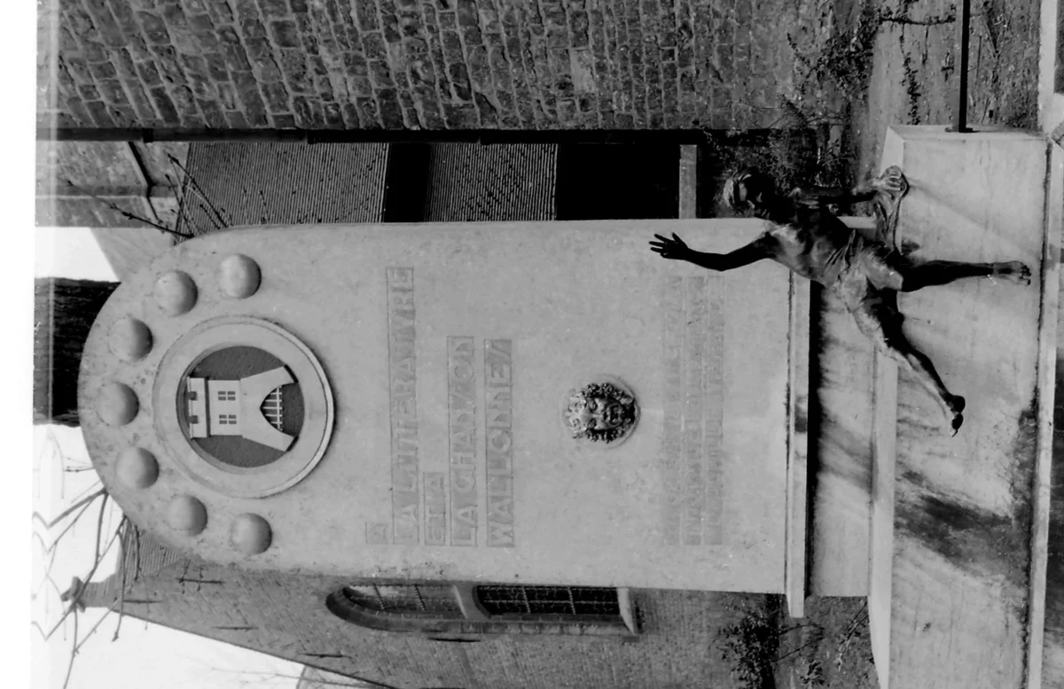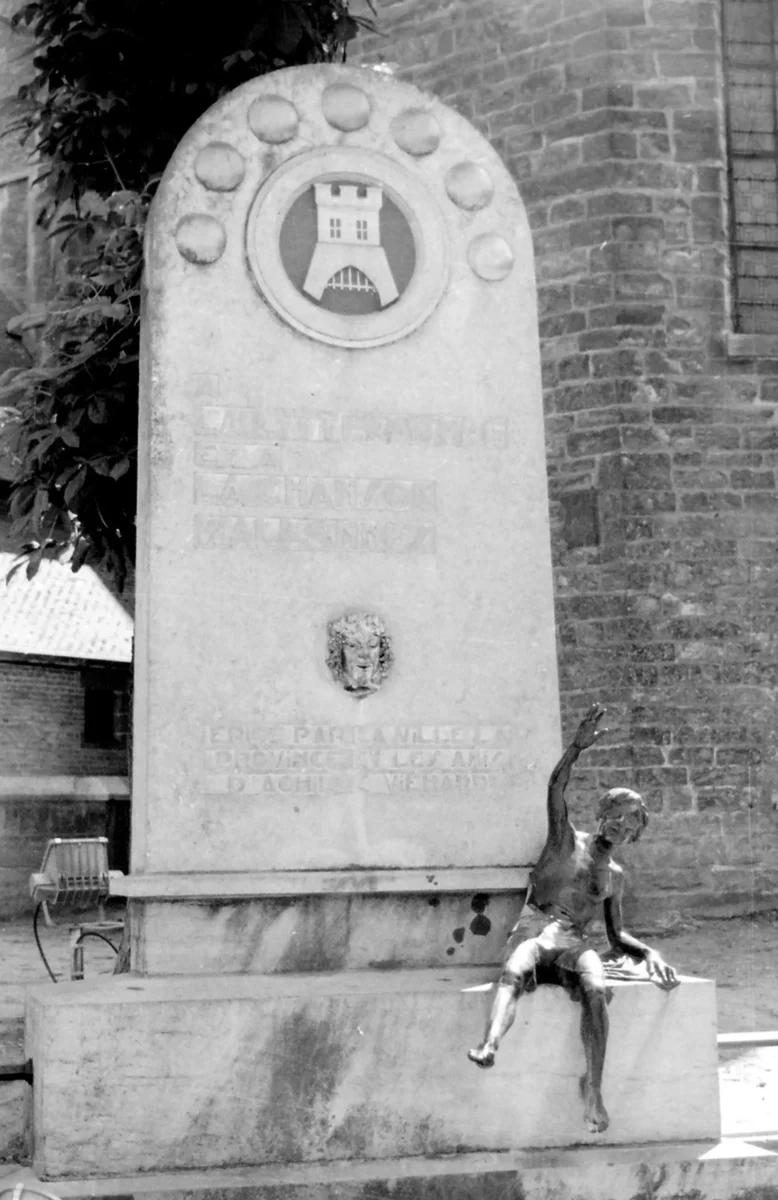 principal de ce monument dédié aujourd’hui à la littérature et à la chanson wallonne. L’attention est cependant attirée par ce gosse souriant et audacieux, malicieux et farceur. Ce titi tournaisien qui semble jeter de l’eau aux passants par son geste goguenard et libéré. Symbole du bon peuple de Tournai, il lance aux échos sa chanson joyeuse.
