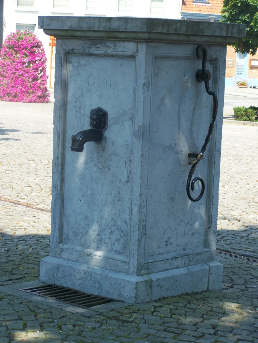 Située en plein milieu de la place de l’église, cette pompe, de forme cubique, est un exemple classique des pompes qui parsèment la Belgique.
